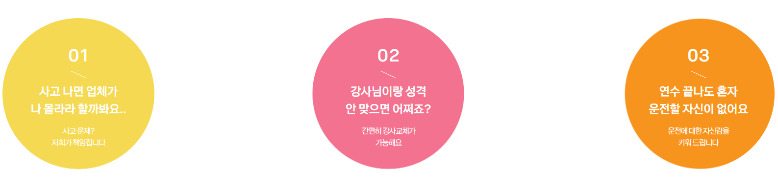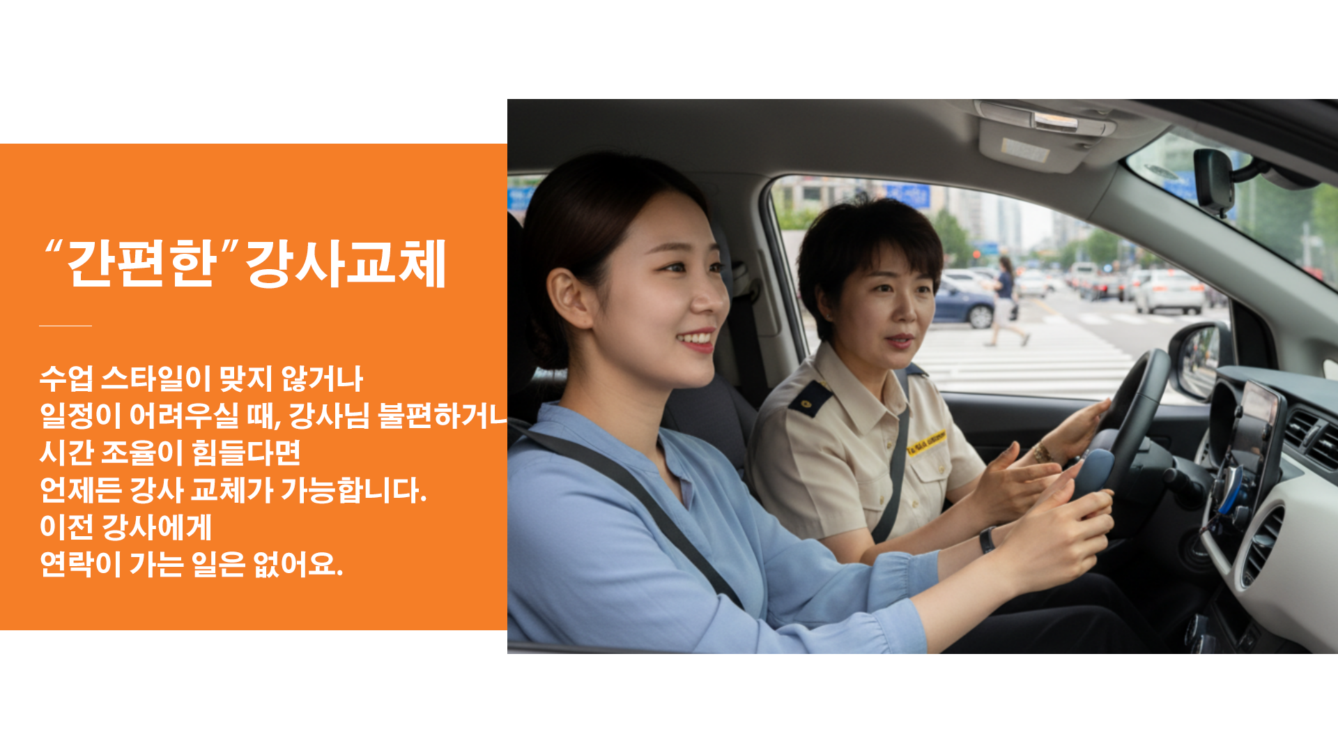 초보자 교육 전문 코치진으로 구성되어 있습니다. 남녀 강사진 모두 교습 경력과 도심 주행 경험이 풍부합니다.